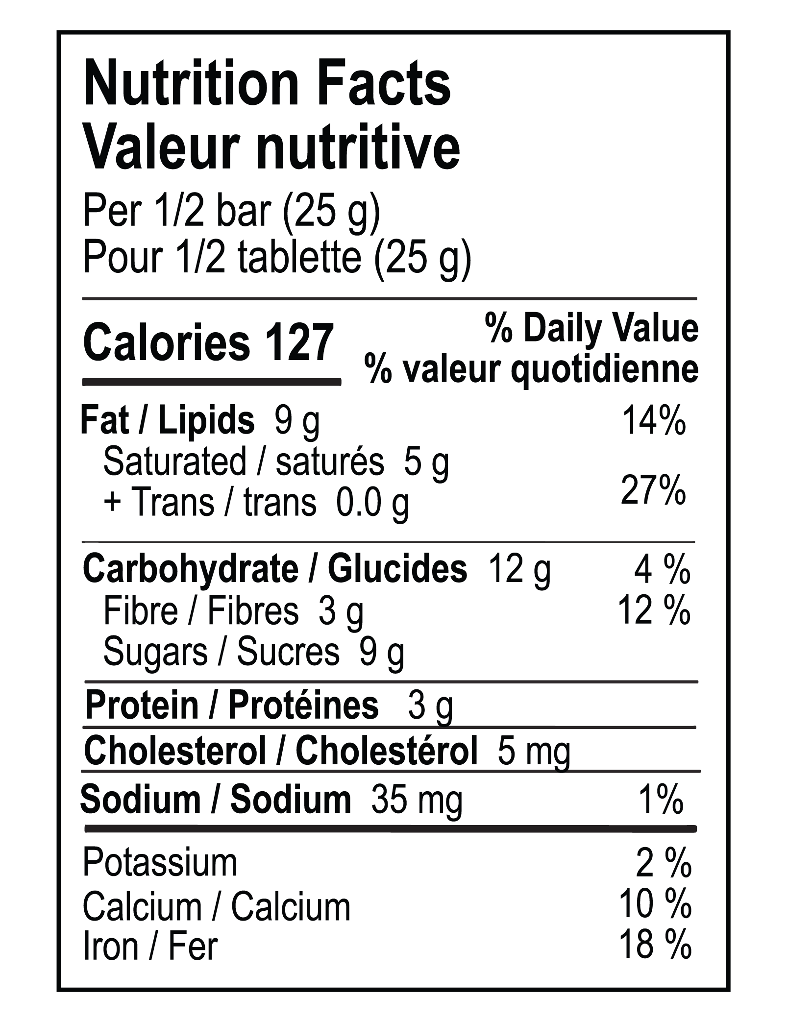 Made in Saint Andrews, New Brunswick from transparently traded cacao beans, sourced from Uncommon Cacao, and grown by a collection of farmers in Tumaco, Colombia.