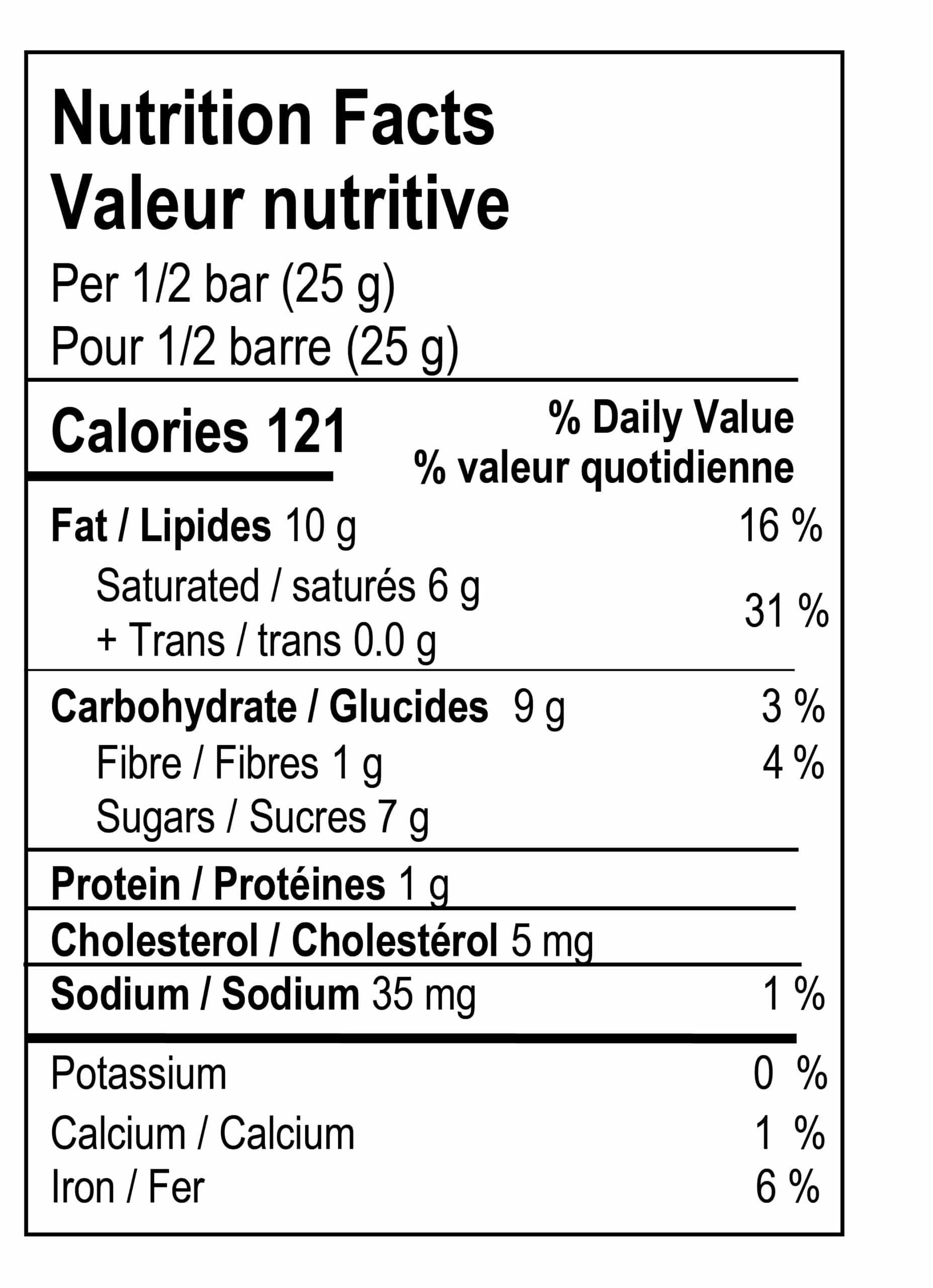 Ingredients: Cacao beans*, Cocoa butter*, Cane sugar*, Coffee beans*, Salt.